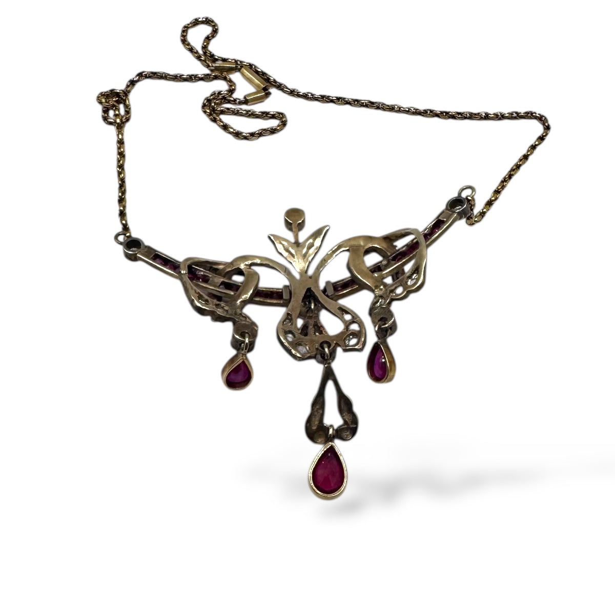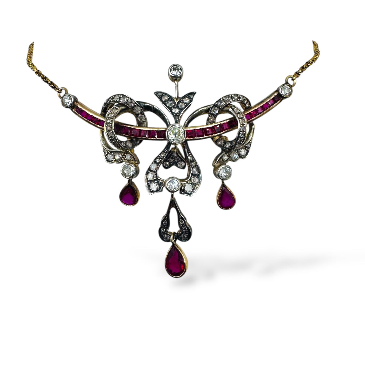 .ענק יהלומים ורובינים ויקטוריאני , מפואר ומרשים , עבודת צורף אומן.
